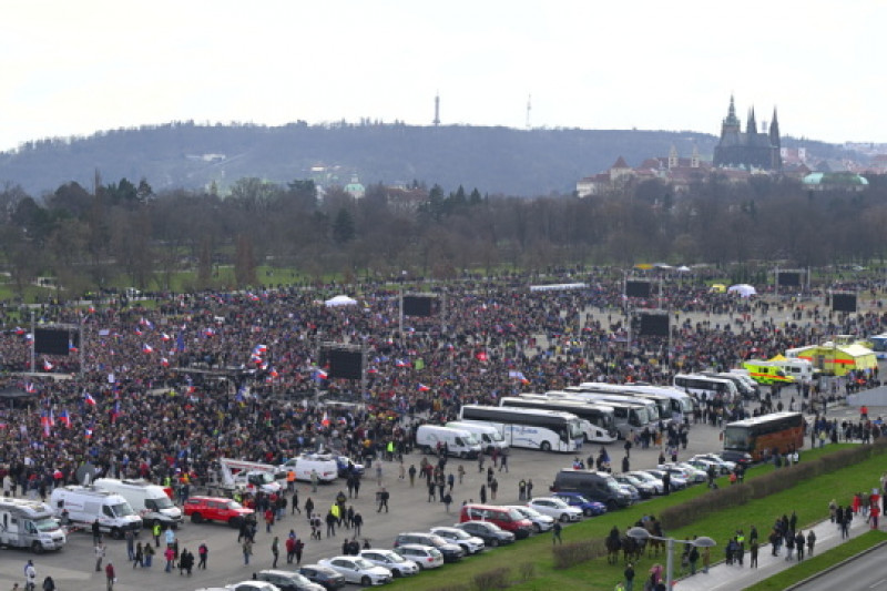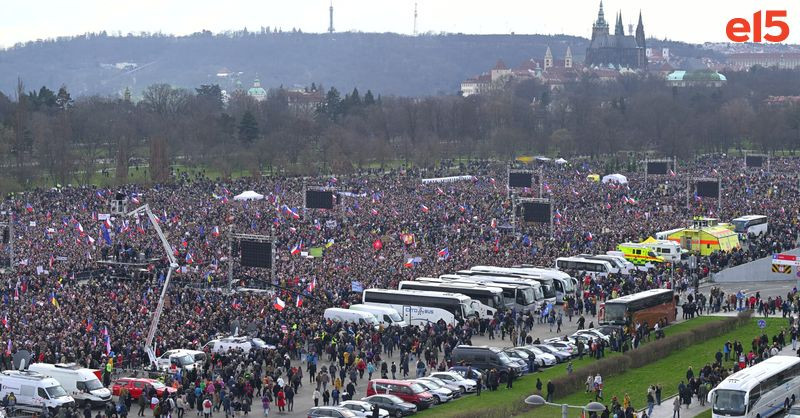 Na pražské Letné se koná shromáždění Milionu chvilek pro demokracii, kde se odhaduje účast mezi 200.000 a 400.000 lidmi, kteří upozorňují na eroze demokracie a kroky vlády Andreje Babiše, zatímco prostor je vybaven bezpečnostními opatřeními a dobrovolníky. #demokracie#protest#Praha