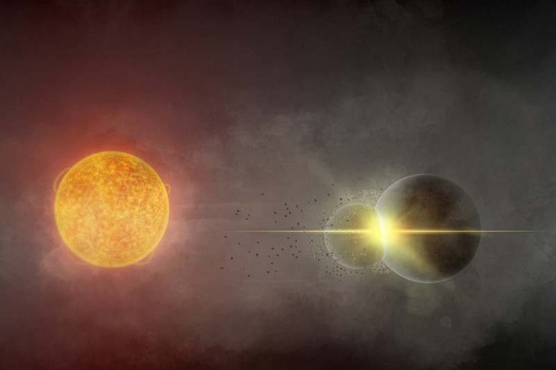 Astronomové objevili, že hvězda Gaia20ehk vykazuje neobvyklé kolísání jasu v důsledku srážky dvou planet, což připomíná událost, která vedla k vzniku Země a Měsíce, a naznačuje možnost formování nových planetárních systémů v budoucnosti. #astronomie#planety#vesmír