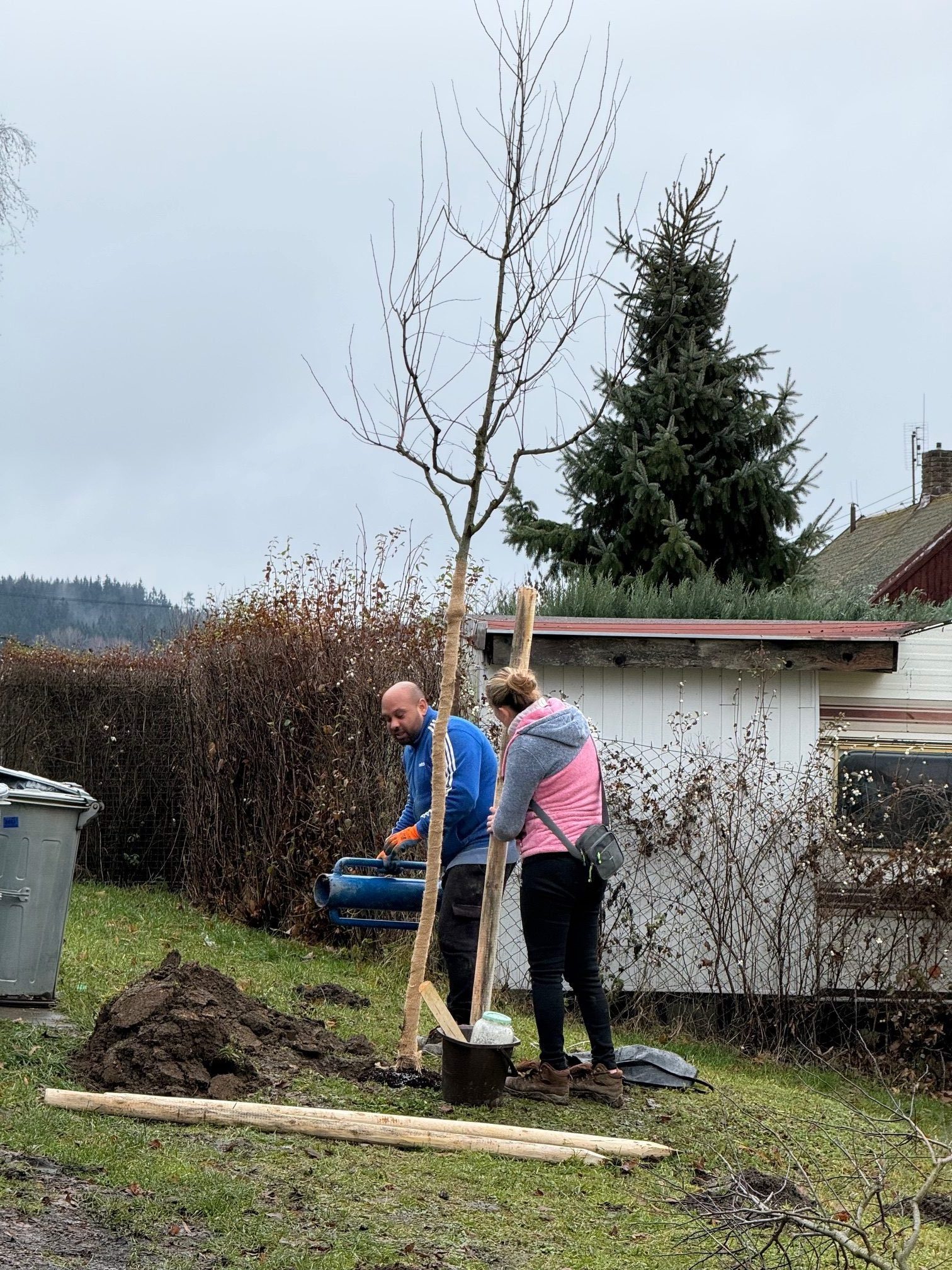 V Krajkové na Sokolovsku vysázeli 14 listnatých stromů na veřejném prostranství mezi paneláky | Skupina ČEZ