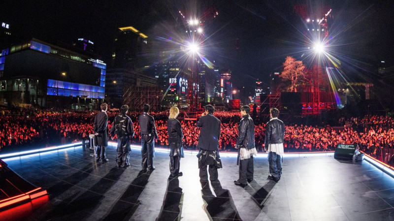 Jihokorejská skupina BTS se po více než tříleté pauze vrátila na pódium během comebackového koncertu v Soulu, který navzdory očekávané účasti až 260 tisíc fanoušků sledovaly pouze desítky tisíc diváků, přičemž většina posluchačů využila možnost live streamu na Netflixu. #BTS#Kpop#koncert