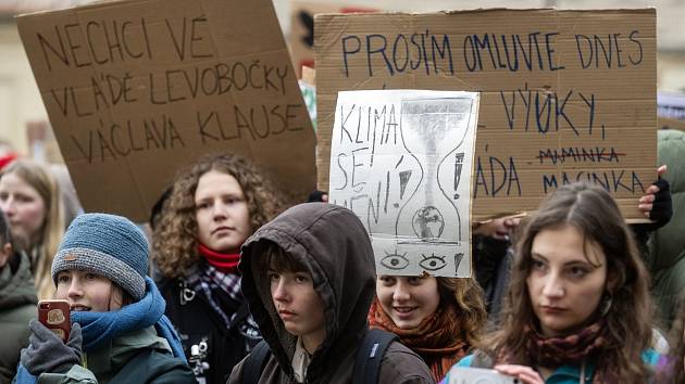 "Dneska se studenti sešli u Hradu, aby dali najevo svůj názor za klima a proti Macinkovi! Je skvělé vidět mladé lidi bojovat za naši planetu! 💚✊ #FridaysForFuture#Demonstrace"
