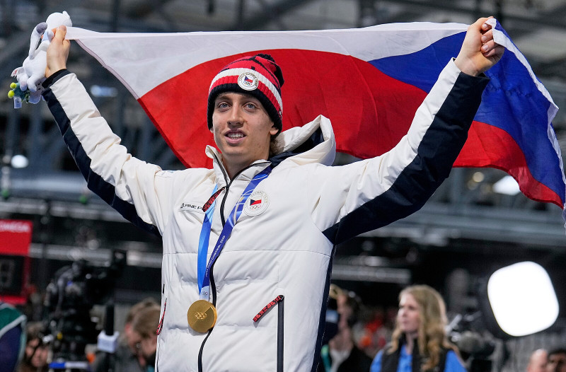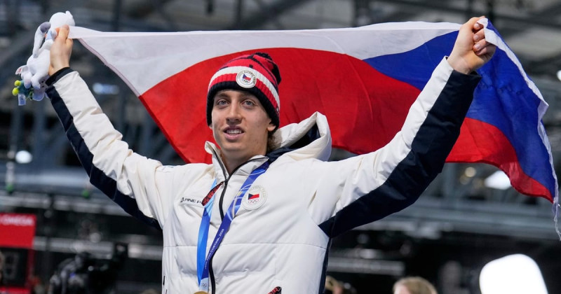 🇨🇿🥇 Metodej Jilek, 19letý český rychlobruslař, získal zlato na 10 000 m na OH v Miláně! S podporou Martiny Sáblíkové, která mu věnovala tričko „GOLDEN BOY“, dokázal přetavit očekávání v úspěch. Těší se na další růst! 👏 #Olympiáda#Jilek#Rychlobruslení